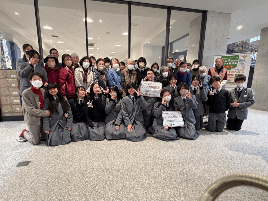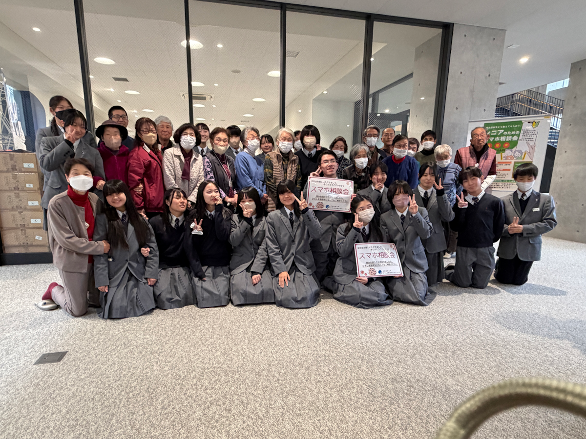 12月5日 広島修道大学ひろしま協創中学校・高等学校でスマホに不慣れな高齢者に対して、高等学校の生徒たちによりスマホ相談会が行われました。