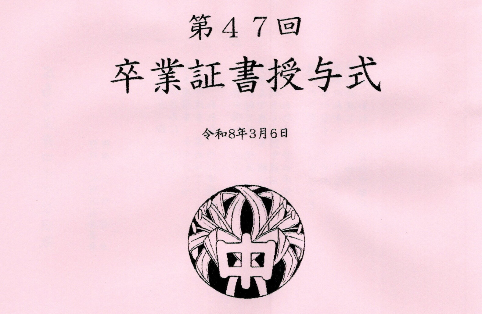 令和8年3月6日 広島市立井口中学校で第47回卒業証書授与式が執り行われました。