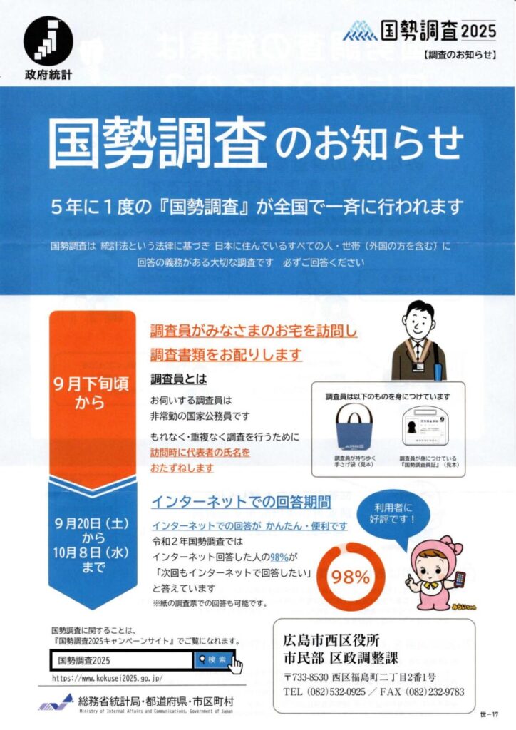 2025年 国勢調査行われます。回答はインターネットが便利です。
