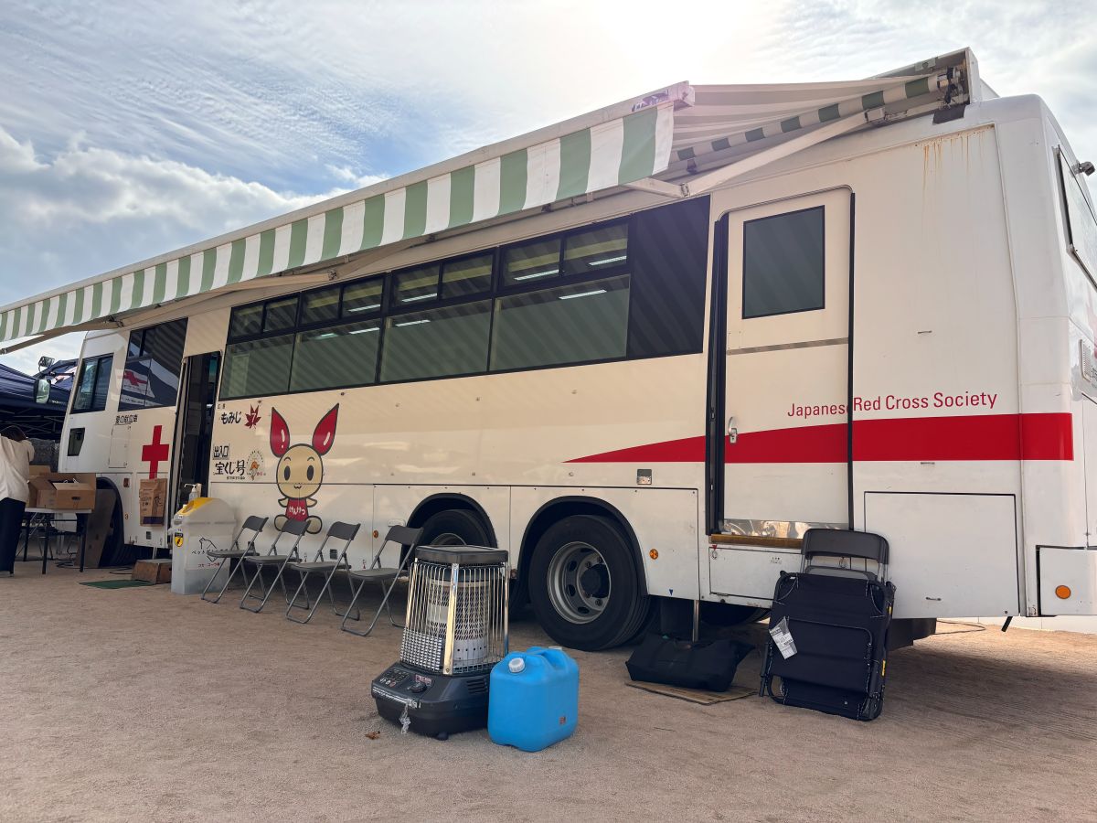 11月8日(土)井口小学校において開催されたふれあい広場で、日赤の献血車を招き献血を呼びかけました。
